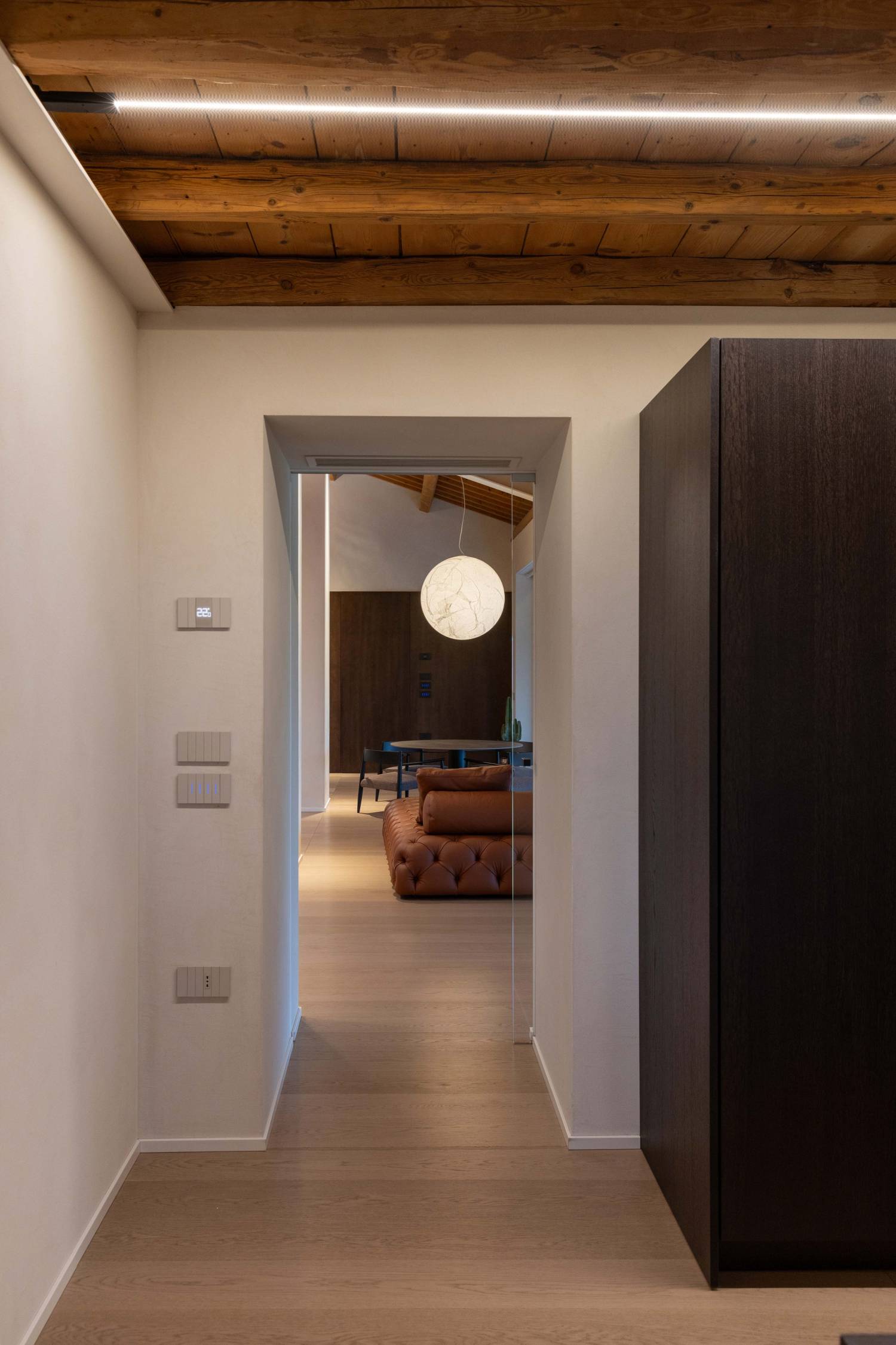Il risultato è una casa che unisce radici e innovazione: un ambiente elegante, autentico e funzionale, dove ogni dettaglio contribuisce a creare un equilibrio armonioso tra architettura, arredo e luce.